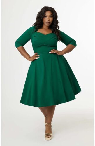 Fashion should work for everyone. If you’re plus-size, look for fit-and-flare dresses, wrap silhouettes, or high-waisted skirts with fitted tops.